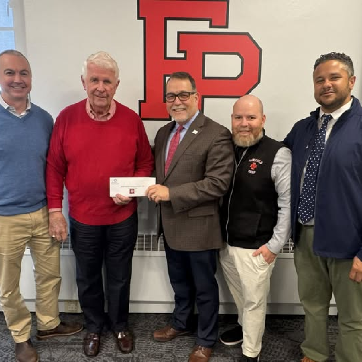 John Santa (Fairfield Prep, Class of 1960) presented Fairfield Prep President Christian Cashman with the Shepherds tuition assistance check he is generously sponsoring for our pilot cohort of mentees at Prep.